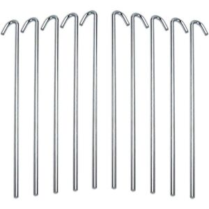 [High quality] Made of high quality steel, high strength, not easy to deform and break, the surface is electroplated, not easy to rust and corrode, perfect for long-term outdoor use [Non-slip hook] With a large non-slip hook on the top, it can be firmly attached to the tent in various ground conditions, and the hook can also prevent the stakes from being difficult to remove and becoming invisible< /p> [Easy to use] Tent stakes are easily inserted into the ground, simply use a hammer to drive the nail into the ground, easily penetrate even the roughest terrain [Applicable] Perfect for anchoring tents, awnings, tarps, flowers, trees, vegetables, gazebos, landscaping or garden plants and sheds, can also attach great outdoor and holiday decorations< /p>