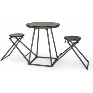 Foldable & Space-saving Design: The 2 round stools are jointed to the table. When not in use, these stools can be folded and hanged on the table legs. This foldable bar table and stool set is a good resolution for dwellers who have limited available living space. Stable & Sturdy Construction: This modern table and stools set features a heavy-duty steel frame and premium MDF tops that allow the table to hold up to 50kg and each stool to have a weight capacity of 150kg. Additionally, the adjustable table feet help to handle the uneven grounds. 3-Piece Table and Stool Set: Including a round table and 2 stools with ergonomic footrests, this dining table set is perfect for 2 people. It can be used as a dining table, coffee table, breakfast bar, small work desk, etc., meeting your different daily needs. Modern Style Adds Charm: The wood grains of these stools and round table are combined to the industrial style. With the unique overall shape, they can fit most types of interior decor and