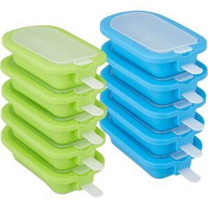 A cold ice cream on a hot summer's day is the perfect way for children and adults to cool down. With these water ice moulds in a set of 10, you can easily prepare lollies and ice cream at home. The popsicle moulds are ideal for various ice cream creations and are easy to use. The flexible silicone makes it easy to remove the frozen contents and is easy to clean. The lid prevents the liquids from overflowing and prevents the ice cream from absorbing foreign odours. Set of 10 ice cream moulds in detail - Overall dimensions H x W x D: approx. 2.5 x 6.5 x 14 cm - Mould dimensions inside H x W x D: approx. 2.5 x 4.5 x 9.5 cm - Handle length: approx. 12 cm - Volume: approx. 70 ml each - Weight: approx. 40 g each - Material: Silicone, plastic - Colours: Pink, green, blue Silicone ice cream moulds for making your own ice cream - Suitable for popsicles and ice cream - Holes in the stick for a secure hold in the ice cream - Fill, freeze in the freezer, enjoy - With lid to prevent foreign odours