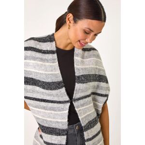 Striped Short Sleeve Knit Cardigan from Roman. Add a touch of sophistication to your Autumn/Winter wardrobe with this stylish, longline cardigan. Featuring a charming stripe knit pattern in beautiful grey hues, this short sleeve cardigan is perfect for layering over a simple t-shirt and jeans ensemble. Stay cosy and chic this season with this versatile and trendy piece! Roman Women's Striped Short Sleeve Knit Cardigan in Grey Size: 20