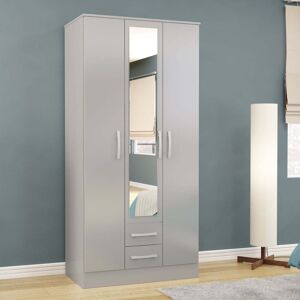 The Lynx Grey 2 Drawer 3 Door Wardrobe is a highly impressive storage solution, boasting plenty of storage features built into a conveniently designed frame. Made to last, the entire Lynx Collection is crafted from high grade MDP materials, further reinforced by a resistant gloss lacquer to protect from signs of damage. The contemporary grey high gloss finish complements any colour schemes, matching well with the silver handles and mirror detail. The Lynx 3 Door Wardrobe boasts two generously sized drawers, a generous amount of hanging space, internal shelves and an external large mirror. . . . . . . . Easy-Clean Surfaces. You do not get much more convenient than the Lynx 3 Door Wardrobe, designed to make the most of your floor space through copious storage features and easy maintenance. The Lynx Wardrobe is coated in an easily maintained high gloss surface, in a contemporary grey colour to coordinate with virtually any colour scheme. To detail, the Lynx 3 Door Wardrobe is fitted with eye-catching silver handles which complements the grey gloss finish very well. The external mirror adds character and extra purpose to this wardrobe, which is highly modern and minimalist in design. For the full look, you can coordinate this item with the rest of the Lynx Grey Collection, for various storage features in the same contemporary aesthetic.. . . . . . . . . Copious Storage. The purpose of the Lynx Grey 3 Door Wardrobe is to maximise your space through conveniently designed storage features, boasting internal shelving, two spacious storage drawers and a hanging area fitted with reliable metal rail. The Lynx Wardrobe is carefully crafted from a high quality MDP material, known to last the test of time and prevent signs of damage - further protected by a high gloss lacquered finish. The drawers and doors are easily opened with resilient silver handles, for simple access to your organised belongings. Start organising your home right away with flat-packed delivery and a simple self assembly of the Lynx Wardrobe. . .
