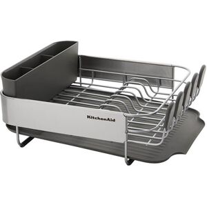 Includes a removable three-compartment cutlery caddy for separating cutlery and utensils. Made from rust-resistant stainless steel with soft non-slip feet to protect your surface. Dimensions: 40.8cm x 32cm x 15cm (16" x 12.6" x 6.2"). Handwash for long-lasting performance. KitchenAid Compact Dish-Drying Rack - Charcoal Grey