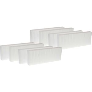 vhbw - the clever way G4 / F7 filter in 8-part pack for your ventilation appliance Our replacement filters from vhbw ensure your ventilation device is ready for use again. The coarse dust filter removes hair, insects, sand and other coarse dust from the air drawn into the unit. The pollen filter provides additional protection against fine dust and pollen. The combination of these filters prevents external impurities from entering the ventilation system. The filters can be inserted quickly and without tools into the slide compartment of the ventilation unit. To maintain the filter performance of your fan, the filters should be changed regularly. This filter set allows you to upgrade your ventilation unit to pollen filter class (F7) without installing external pollen filter housing. PLEASE NOTE: The air direction is marked on the filter elements. CONTENT OF DELIVERY: - 8x filter (G4 / F7) TECHNICAL DETAILS: - Dimensions per filter (L x W x D): ca. 50 x 16 x 1 cm - Filter class: G4 / F7