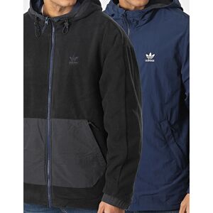 This Adidas Originals Lock Up Reversible Jacket for men features a reversible design with a navy and black colour combination. Its hooded zip-up style is adorned with classic adidas stripes, and it also includes a metal zip closure, side zipped pockets, and elasticated cuffs. Fleece reversible jacket Lined hood Full zip fastening Straight hem Printed and embroidered branding