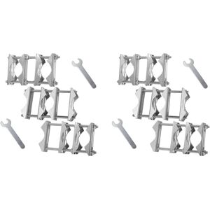 [WIDELY USED] This pole clamp is designed to hold most Wifi, PCS, Cellular, TV, CB, Ham antennas, pipes, flagpoles, torches, umbrellas, parasols, fishing rods. It allows you to vary the length of the pipe. [3 ASSEMBLY OPTIONS] The antenna pipe clamp kit is ideal for mounting a round pipe (pole) to another round pipe (pole), square railings to another square railing, or for mounting a round pipe (pole) to square railings. (Round pipe diameter range is 1-1.8 inch, square pipe diameter range is 0-1.8 inch) [Jaw Blocks Make It More Stable] The antenna mast clamp kit uses jaw blocks with two long bolts (2.2 inch apart, 5.5 inch long) for a more solid installation to ensure the pole does not slip. [MATERIAL] The heavy duty mast-to-mast hardware is made from zinc-plated steel with a rust-proof coating. [4 SMALL WRENCHES INCLUDED] We provide 4 small wrenches to make installation easier and faster for you. Color: Silver Material: Iron + White Zinc Plated Package Contents: 6 x Antenna Mast