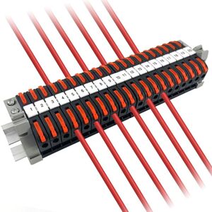 Package Contents: The distribution terminal kits for precise wiring include 20 × black terminal blocks, 1 × 1-20 number marking strips, 2 × 20cm bars, 20 × screws, 2 × fixed base, 2 × parallel bars. Simple and practical: Cable connection kit, insert the wire and press the lever, fast wiring, can be installed in seconds on bare cables, reusable. Scope of application: The cable clamp is suitable for solid wires 0.08-4mm² / 28-12AWG, suitable for soft wires 0.5-2.5mm², stranded wires: 0.08-4mm² (28-12AWG). DIN rail terminal block kit: The rails can be used to connect electrical devices such as circuit breakers, modular plugs, motor soft starters, contactors, surge protectors, relays, terminals, etc. Connection Terminal Kit: The insulation material of the connection terminals is flame retardant PA (lever) / PC (housing), the inner conductor material is nickel-plated copper, safe and insulating, the copper foil is precisely conductive and durable.