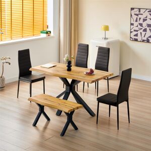 A Stunning wooden brown rustic effect Dining Table set included set of 4 tufted velvet grey rocco chairs with slightly curved back design, and 1 bench The dining table colour is brown with rustic effect. The dining chairs colour is grey with slightly curved back design for fitting with body shape The dinner table is crafted with high-quality MDF, and a melamine laminated finish to ensure a durable, long-lasting tabletop. The dining chairs are made of premium velvet with metal chair legs Dimensions: The dining room chairs sizes are H87 x L59 x W44 cm. Dining table size is H75 x L117 x W77 cm. The seat height of the chair is 45 cm Bench made of high quality MDF and matching rustic effect with a size of L90 x W30 x H45 cm. Straightforward assembly is supported by clear instructions for our dining table set. FEATURES: The Dining set includes a table, 4 high-quality chairs, and 1 bench. Dining table made of high-quality MDF and a melamine laminated finish. Chairs material is premium velvet with metal chair legs. Bench is made of MDF with matching rustic effect. Legs prevent damage with the adjustable foot protection provided. Chair Size: H87 x L59 x W44 cm. Table Size: H75 x L117 x W77 cm. Bench Size: L90 x W30 x H45 cm. The seat height of these chairs is 45 cm. Convenient format with instructions for easy assembly. 17 Stories
