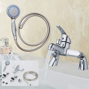 Description: *Includes Wall Bracket, Shower Hose and Handset *Easy to Install and Maintain *Manufactured from solid brass with a chrome finish *1/4 Turn Ceramic Disc Technology *High Polished 3 Layer PVD Mirror Finish *Distance between 2 legs - 150 mm *Minimum recommended 0.5 bar water pressure, best results achieved with 1.0 bar Package Contains: *1 x bath filler tap *1 x handheld shower head (3 modes water spray) *1 x 1.5m hose *1 x wall bracket