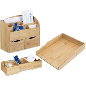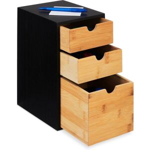 With this drawer unit made of bamboo and MDF, you can organise your home in no time at all. With its 2 wide drawers, the organiser box offers plenty of space for all kinds of small items. The drawer box is just as suitable for office accessories on the desk as it is for make-up utensils on the dressing table, tea and coffee capsules in the kitchen or craft supplies in the studio. The modern, natural design of the desk organiser is guaranteed to fit into any room. Drawer box in detail - Dimensions H x W x D: approx. 14 x 33 x 21 cm - Internal dimensions of drawers H x W x D: approx. 4.5 x 29.5 x 18.5 cm - Weight: approx. 2.2 kg - Material: Bamboo, MDF - Colour: Black, natural Mini chest of drawers with drawers - As an organiser for the office, study or children's room - Organising system for notes, office materials or craft supplies - Also for make-up, sewing kit, jewellery, nails, screws and much more. - Natural bamboo fits in the kitchen and bathroom, on desks etc. - With 2 easily