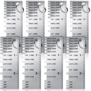 Effortless Portability and Use: Quickly measure metal thickness straight from your pocket more efficiently than a traditional tape measure. This handy gauge tool simplifies your toolset while enhancing measurement speed and accuracy. Construction: Crafted from high-quality stainless steel, this thickness gauge tool is designed to resist rust and corrosion ensuring . Its nature makes it an ideal choice for frequent usage in environments without the need for replacement. Comprehensive Set: Each package contains 8 gauge tools, each measuring 1.0 inch in width and 2.8 inches in length, providing ample quantity for personal use or distribution among team members in professional settings. Versatility for Professionals: Essential for anyone in welding, machining or metalworking, this tool allows you to assess material thickness before initiating any welding or machining process, ensuring precision and quality in your work. Essential for Accurate Measurement: A must-have for metal workers and