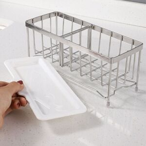 The removable water tray avoids the cleaning trouble caused by water drops and is easy to disassemble and clean. The sink storage rack is ideal for organizing sponges and brushes and keeping the countertop clean. The compact kitchen sink accessories are a stylish and practical way to save space in your home. The built-in rails provide dry hanging space for dish towels. This kitchen sink organizer is perfect for use on the countertop between the sink and the wall. Material: 304 flat stainless steel. Silver Size: about 8.27*3.39*3.74inch/21*8.6*9.5cm