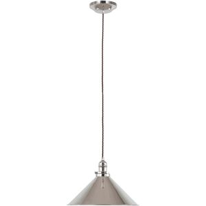 PV-SP-PN Polished Nickel Provence French Style Ceiling Pendant Light FEATURES * Polished Nickel finish * Mid 1900's French style design * Adjustable height drop * Black and White corded wire * 1 Light SIZE * Diameter 370mm * Height 230mm * Depth 280mm (min) - 2000mm (max) BULBS * Takes 1 x 100watt E27 (not included) ORDER CODE * PV-SP-PN