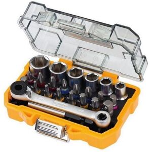 The DEWALT DT71516 Socket & Screwdriving Set contains a set of sockets, 6-13mm and ;a variety of popular screwdriver bits. Supplied in a durable storage case built with a metal clasp fastening and a belt clip for easy accessibility. Contains: 6 x Sockets: 6, 7, 8, 10, 11 and 13mm. 3 x 25mm Pozidriv Bits: PZ1, PZ2 and PZ3. 3 x 25mm Phillips Bits: PH1, PH2 and PH3. 6 x 25mm TORX Bits: TX10, TX15, TX20, TX25, TX30 and TX40. 3 x 25mm Hex Bits: 4, 5 and 6. 1 x Wrench. 1 x Bit Tip Holder. 1 x Adaptor.