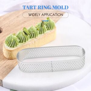 TART RING: You will get 8 oval tart rings, meet your different need. Enjoy your baking time with your family. PREMIUM MATERIAL: Made of 18/8 Stainless steel, high temperature, corrosion-resistant, not easily deformed, reusable and no rust. WIDELY APPLICATION: perfect for creating tarts, cakes, mousse and desserts. Excellent for baking, layering, and molding. VENTING HOLE DESIGN: The cake ring has a venting hole design, and the venting holes are evenly distributed and ventilated without leaking. EASY TO USE AND CLEAN: More easy to release and convenient to use. Easy for cleaning, oven and dishwasher safe. Colour: silver Material: stainless steel Size: 9.4 x 2.8 x 2cm Package Contents: 8 x Tart Ring Only the above package content, other products are not included. Note: Light and different displays may cause the color of the item in the picture a little different from the real thing. The measurement allowed error is +/- 1-3cm.