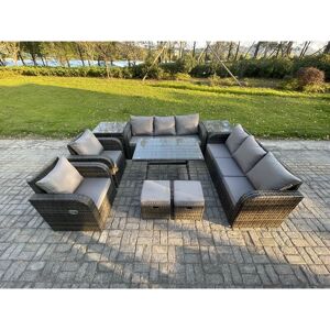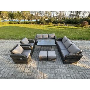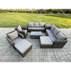 This 10 seater deluxe Garden furniture set adds decoration to your courtyard, deck, backyard, porch, and even swimming pool, using high quality PE rattan and durable galvanized steel construction, which can withstand the bad weather in the UK and can be easily combined into different configurations according to your needs at any time. Set Dimensions: • 2 x Side coffee table :65L x 65W x 66H cm • 2 x Big footstool :65L x 65W x 34H cm • 2 x Reclining Chairs: 74L x 67W x 79H cm • 2 x 3 seater Sofa Size: 177W x 67D x 79H cm • 1 x Oblong Coffee Table :85L x 50W x 37H cm Dark grey mixed rattan with dark grey fabric .Color may some difference due to light or monitor .we are unable to return the item due to color problem . The armchair are adjustable, you can adjust the inclination of the chair back from 90°-130° through the button . Items Comes Flat Packed And Easy Assemble,Sturdy Galvanized Steel Tube Metal Frames With Powder Coating To Prevent The Rust Flat PE Rattan Completely Made By
