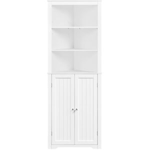This corner cabinet will bring your bathroom a rejuvenating and peaceful ambiance with its sleek design and subtle shape. This tall corner cabinet includes three open shelves and one enclosed cabinet with doors, offering a range of storage and display possibilities. It conveniently fits in corners and can be a versatile storage cabinet in any house. With the adjustable shelf design, you can easily accommodate items of various sizes, ensuring that daily items have their own designated space. Yaheetech