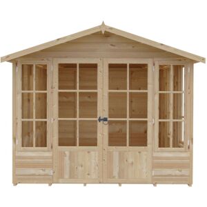 The Delmora is a beautiful, airy summerhouse with a glazed front. There are double doors giving easy access for your garden furniture and imagine dining here with the doors thrown open to enjoy your garden. The Delmora has opening windows, the number determined by the building size so please look at the plan drawing provided. All glazing is glass. This lovely garden room is constructed from high grade 12 mm pine shiplap boards over sturdy 34 mm x 34 mm framing. The floor and roof are 12 mm T&G with roof felt provided to complete the roof exterior. Interchangeable side panels so the window can go on either side. Dipped base coat preservative ready for you to top coat. Features: A versatile summer house to enhance your outdoor space Ideal for dining or relaxing Traditional gate latch to door All timber slow grown far North for highest quality Dip treated base coat preservative All fixings, roof felt and assembly instructions are provided Proudly made in the UK Dimensions & Weight: