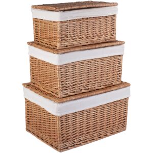 Full Finish Willow Storage Hamper Set with faux leather fitments & removable cotton lining - Set of 3 - Available in a choice of basket finishes. The hampers are ideal for the storage of many Home objects such as crafting items, clothing, kitchen and bathroom products, office products, and so on. They will look great and hide anything you simply don't want on display in the home. The basketware is handmade by artisans from sustainable willow and as such is both stylish & durable and is designed to be used again and again. The lining helps to protect and contain any contents The basketweave is Handmade by artisans from ecological and environmentally sustained natural material. Stylish & robust Easy to move around the Home Attractive enough to be on display in any room setting Medium Basket : 19cm H x 37cm W x 25cm D Large Basket : 23cm H x 42cm W x 30cm D Extra Large Basket : 27cm H x 47cm W x 35cm D Medium Basket: 19cm H x 37cm W x 25cm D Large Basket: 23cm H x 42cm W x 30cm D Extra Large Basket: 27cm H x 47cm W x 35cm D As Willow and Rattan Basketware is hand-made sizes & colour finishes may vary slightly. Please allow for a 5% tolerance as a result, thank you August Grove Colour: Natural
