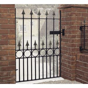 Features: Products fit a total post to post GAP, hinge and latch gaps are already accounted for. Solid steel construction Heavy duty 40mm x 10mm frames Infill bars 16mm diameter Tall Double gate hanging stiles 40mm x 30mm Non-electro galvanised are only primed black, will need to be painted after installation. Balmoral gates have adjustable hinges for levelling on installation. All Balmoral gates have the closing bolt on the right hand side when viewed from the road. Balmoral Spear heads are primed black, not as pictured. Fittings pack included (No screws). Limited made to measure due to fixed ring size Balmoral range is made to order Dimensions: Fits Gap: 1830 mm Height: 559 mm Note: Given width indicates the gap size. The railing panel are physically smaller than the gap size to make room for the hinges and latch. . Balmoral Premium Range Spear Top Railing Panel with Rings Fits Opening . Delivery is FREE to UK mainland excluding the following postcodes, where a surcharge may apply.