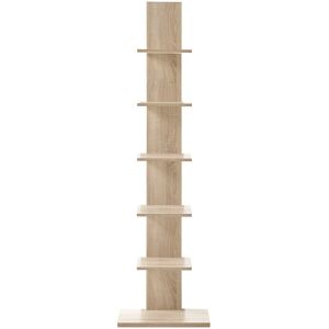 Shelf with 6 shelves. Shelf in imitation Sonoma oak with melamine coating. 5 x hanging shelves, each with a maximum load capacity of 2kg. Upper shelves each approx. 29cm wide and 20cm deep, distance between the shelves approx. 28cm, bottom shelf width 50cm, dimensions WxHxD 50x123x38cm, delivery disassembled including assembly instructions 17 Stories Finish: Brown