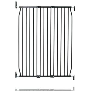 The Extra Tall Eco gate comes as two panels with a simple central connector which fits standard widths of 70 - 80cm. A range of extensions are available which simply slot between the main panels to fit any width up to 140cm. By removing the traditional overlapping system of traditional screw fit pet gates, the whole installation process has been simplified to five easy to follow steps. This gate has a simple manual opening and closing system. The push to release button is activated with a thumb, allowing the user to lift the gate frame out of the cradle with ease. Once through the gate, simply slot the fittings back into the cradle. Screw fit gates are recommended for use at the top of a flight of stairs as they do not have a trip bar, unlike pressure fit gates. However, it is equally important that a gate can be restricted to open ONLY away from the stairs to avoid any potential dangers of falls. The gate has a one-way restrictor to resolve this issue, but also has the option to
