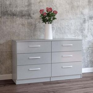Designed to better your life with exceptional storage solutions, the Lynx Grey 6 Drawer Chest offers dual drawers and plenty of storage space. This chest is crafted from a strong and reliable MDP material, coated in resistant lacquer to further protect the beautiful aesthetics. The Lynx 6 Drawer Chest offers six equally sized drawers for generous storage space, placed vertically in split towers for optimal organisation. Access your belongings easily through the reliable silver handles, for a swift and silent opening!. . . . . . . Gorgeous Aesthetics. The Lynx 6 Drawer Chest is highly modern, designed to blend effortlessly into a wide range of interior styles. Complete with a grey high gloss finish, the contemporary aesthetics of this drawer chest can be combined with any colour scheme. Designed for those who require plenty of storage, the Lynx 6 Drawer Chest manages to offer lots of storage whilst preserving floor space. With dual split drawers of equal sizes, the exterior of this savvy storage solution is seamless and aesthetically pleasing. For nice finishing touches, the Lynx Drawer Chest is fitted with modern squared silver handles. Shop the rest of the Lynx Collection to complete the look in your bedroom. . . . . . . . . . Storage Excellence. The Lynx 6 Drawer Chest features as many as six spacious storage drawers, conveniently placed in a way which conserves floor room. The six drawers are individually crafted using MDP materials, finished to a high standard and coated in resilient high gloss for further protection. Each drawer is fitted with easy-open gliders and dual handles, for simple access to your belongings. You are closer than you think to an organised home, with flat-packed arrival and a quick assembly of the Lynx 6 Drawer Chest. . .