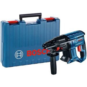 The Bosch GBH 18V-21 SDS Plus Hammer Drill offers 3 modes of drilling: drilling, hammer drilling and chiselling, with both forward and reverse rotation. Its brushless motor reduces the need for maintenance and improves run time per battery charge, resulting in less downtime and increased longevity. Fitted with an SDS Plus tool holder for optimum power transmission and tool-free bit changes. It also has an ergonomic, soft grip handle for excellent comfort and control. Specification: No Load Speed: 0-1,800/min. Impact Rate: 0-5,100/bpmImpact Energy: 2 joulesCapacity: Concrete with Hammer Bits 4-20mm, Steel 13mm, Wood 30mmWeight: 2.4kg (without battery)This Bosch GBH 18V-21 SDS Plus Hammer Drill is supplied in an L-BOXX carry case as a Bare Unit - No Battery or Charger. Bosch GBH 18V-21 SDS Plus Hammer Drill 18V Bare Unit + L-BOXX in Blue