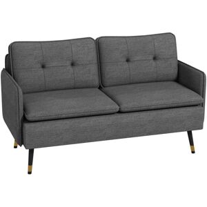 A compact sofa which doesn't scrimp on the comfort - this sofa for living room from HOMCOM. Its breathable linen-look upholstery is smooth on the skin, with the padded seat and back cushions for comfort. Button tufting on the back and gold coloured details on the legs for style. Complete with steel legs for strong support. HOMCOM Modern Upholstered Two Seater Sofa for Bedroom Living Room Dark Grey