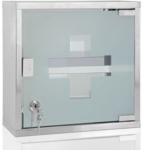 Store your medicine in a safe place! The practical medicine cabinet made of stainless steel provides plenty of room for the safe storage of your drugs and is equipped with large compartments. The door made of satinized, tempered safety glass can be opened and locked with a thumb, thanks to the magnetic closure. This medicine closed is equipped with a cylinder lock and two keys for the secure storage of medication and first aid supplies. The closed it prepared for fast and easy wall installation – Screws and wall plugs are included in the scope of delivery. Available in the following models: Medicine cabinet with 2 compartments Medicine cabinet with 3 compartments Product details: Safe storage of medicine and first aid supplies Generous space thanks to large compartments Pressure-sensitive magnetic closure Door made from satinised, tempered safety glass Durable and stainless Modern look Technical Specifications: Material: Stainless steel with satinised, tempered glass Dimensions of the