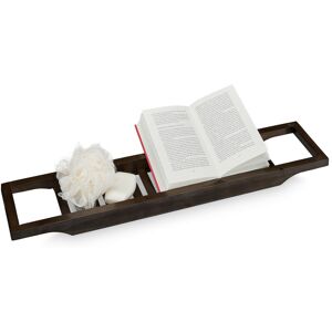 Make taking a bath even more comfortable. This bath tray is the perfect place for storing bath products such as shampoo, sponges or shower gel. This way you will always have everything you need in reach and can also use your phone or tablet safely protected from water. There is also a wine glass holder for that extra touch of luxury. The caddy is made of robust bamboo and thus ideal for moist and damp environments. The dark wood ensures that this piece will be an elegant eye-catcher in your bathroom. Bathtub Caddy Details - Size H x W x D: approx. 4 x 70 x 15 cm - Shelf size W x D: approx. 48.5 x 11.4 cm - Weight: approx. 610 g - Material: Bamboo - Colour: Dark brown Practical Over the Bath Rack - Simply place each side on the edge of the bathtub - Practical tray for soap, sponge, phone etc. - Keep essential bath products on hand - Helps create a spa feeling in your own home - Decorative focal point for your bathroom with a rustic look Included in Delivery - 1 x bath tray - Decorative