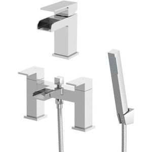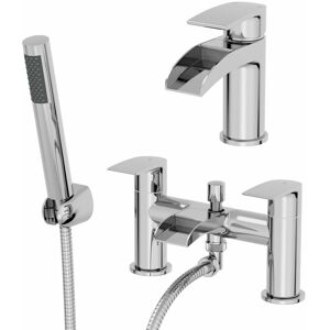 The Aquari Dakota range of bathroom taps feature strong angular lines and smooth surfaces, which combine to make a great impact on any contemporary bathroom. This set is a fantastic solution to all of your bathroom tap needs. Features and Benefits: Open top waterfall spouts provide you with a cascade of water. The polished chrome finish will look great in any style of bathroom. Easy to use taps with twin levers on the bath shower mixer tap and a single lever on the basin tap The shower handset is ideal for getting at those hard to reach areas Easily switch between the taps and shower with the handy diverter Solid brass build for durability and a long life Ceramic cartridge for long lasting reliability and a smoother quarter-turn action Pair with other gorgeous Dakota Waterfall Taps PLEASE NOTE: flexible tails are included for the basin tap ONLY Fantastic 5 year guarantee for complete peace of mind Technical Specifications: Bath tap flow rates (l/min): 0.5 bar – 21.5 / 1.0 bar – 29.6 /