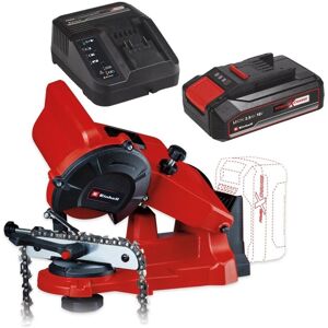 With the Einhell GE-CS 18 Li, you don't have to be an expert sharpener to restore a cutting edge to worn chainsaw chains. It can be powered by any Power X-Change battery, meaning you can use it at the work site even when there is no mains power available. The tool has everything you need, including a depth stop to protect the chain from excessive material removal, an angle gauge and a chain tensioner to ensure the chain is correctly positioned for precision grinding. It has a built in LED worklight, and comes complete with a grinding wheel and a clamp for fastening it to a work surface. Features & Benefits • Member of the Power X-Change family • Can be used with any Power X-Change battery • Helps to save money on resharpening or chain replacement costs • Depth stop to reduce loss of material • Scale for precise setting of the grinding angle • Clamping device • LED light for optimum illumination • Includes grinding wheel Specifications • Battery Voltage: 18v • Battery Type: Power X-Change Lithium Ion Contents • GE-CS 18 Li Cordless Chain Sharpener (bare tool) • Grinding Wheel • No Battery • No Charger