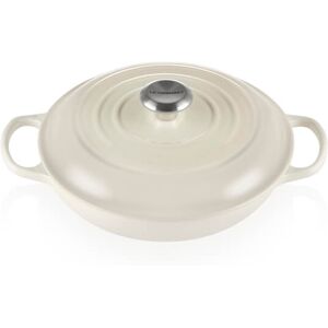 This Le Creuset Signature Meringue Cast Iron 30cm Shallow Casserole is perfect for a wide range of dishes - from creamy risottos and tender, flavourful meat and vegetables to crisp, golden pies and tarts. The large, flat shape and shallow sides make this cast iron casserole ideal for browning meat and vegetables, stir frying, simmering casseroles, baking and serving at the table. ADVANCED SAND INTERIOR ENAMEL - durable and easy to clean, specifically engineered to resists staining and a higher resistance to wear and tear. Significantly improved durability and performance including: 35 - 40% more resistant to thermal shock, 16% more resistant mechanical shock (chipping from utensils), more resistant to acid attack, 24% more resistant to enamel erosion, even less absorption of food colours, more durable against repeated dishwasher use and 45% easier to clean. LARGE HANDLES - easier to grip and lift, even with oven gloves or mitts, when full. ERGONOMIC STAINLESS STEEL KNOB - stylish and durable brushed stainless steel finish. Provides an easy, comfortable and natural grip. Suitable for all temperatures. ENGINEERED LID - tight fit with built in stabilizers for enhanced moisture lock in and flavour when cooking. Handcrafted at the Le Creuset foundry in northern France since 1925, Le Creuset casseroles are made from premium quality cast iron ensuring each product is beautifully finished and long lasting. A true kitchen essential, the cast iron shallow casserole is not only perfect for making casseroles, stews and one pot roasts, but is versatile enough for baking cakes and bread. Le Creuset cast iron cookware also works efficiently at low to medium cooking temperatures and retains heat effectively, ensuring food stays warm for longer. Le Creuset cast iron casseroles are suitable for all hob types (including ceramic, halogen, induction, gas and oil or wood) and are also oven and grill safe. Dishwasher safe, although hand washing is recommended. The Le Creuset 30cm shall ow cast iron casserole is ideal for 4-6 people and has a capacity of 3.2L. Dimensions: L40.2cm x W31.7cm x H13.5cm. Weight: 5.56kg. Made in France. This Le Creuset Signature Meringue Cast Iron 30cm Shallow Casserole is supplied with a manufacturer's lifetime warranty.