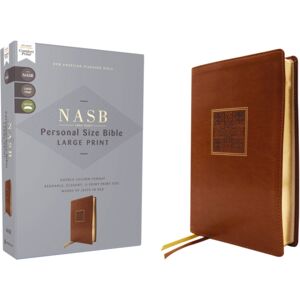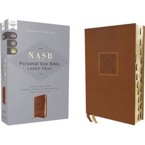 Easy to read. Easy to carry. This Bible brings readability and portability together in one neat, sophisticated package.Featuring a generous print size and the Zondervan NASB Comfort Print® typeface, this Bible provides a clear, smooth and comfortable reading experience for readers of all ages.Ideal for anyone looking for a Bible that is gentle on the eyes yet easy to carry, you can take this large print personal size Bible anywhere. Universally recognized as the gold standard among word-for-word translations, the beloved New American Standard Bible, 1995 Text, is now easier to read with Zondervan’s exclusive NASB Comfort Print® typeface.The NASB Personal Size, Large Print Bible gives you the translation celebrated for faithfulness to the original biblical languages in a readable and portable size. Features:The full text of the New American Standard Bible, 1995 TextDouble-column formatWords of Jesus in redPresentation PageTwo satin ribbon markersLeathersoft cover lies flat when openThumb IndexedExclusive Zondervan NASB Comfort Print® typefacePrint Size: 11