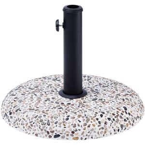 Outdoor Umbrella Stand. A functional yet decorative parasol base that complements gardens and terraces in traditional, modern and minimalistic décor. Made from robust and sturdy concrete in black, the piece features an intricate pattern which makes it look as if it's made from metal. The base comes with three pole adapters which allow for easy accommodation to everyone's needs. Details: Product Type: Parasol Accessories General Color: White, Brown, Beige Material Type: Concrete Main Material: Concrete Shape: Round Recommended for: Market Parasol Dimensions: Depth: 47 cm Width: 47 cm Pole Diameter: 38 Height: 36 cm Weight: 21 kg Offer Includes: 1 x Parasol Base Key Features: Quick and Easy Installation, Solid Craftship, All-Weather, Easy Care and Durable Materials Assembly Information: Partial Assembly Required. 5-15 min. Additional Information: Please note that this product can be exposed to temperatures from -5 ° C to + 80 ° C. Lower or higher temperature may cause the item to