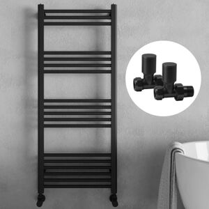 Fnx Bathrooms - Matt Black 1200 x 300mm Heated Bathroom Towel Rail Warmer Ladder Radiator with Straight Manual Valves Pair