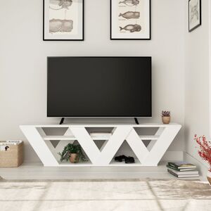 Introducing Our Modern TV Stand: Elevate Your Space! Enhance your modern home with our uniquely designed TV stand, expertly crafted from high-quality engineered wood and finished with protective melamine for enhanced durability and easy maintenance. Assembling this stylish piece is a breeze with our clear instructions, and our sturdy and recyclable packaging ensures a secure delivery to your doorstep. We're always available to answer any questions and improve your shopping experience. 📋 Features and Specifications: Assembly required; fittings & fixings included for your convenience. Compatible TV size: 30-55 inches Guarantee: Enjoy peace of mind with a 2-year guarantee. Supplied flat-pack for easy transportation. This stunning TV stand is a perfect addition to any living room or entertainment space. Its sleek and versatile design, along with the unique v-shaped legs, adds a modern and contemporary touch to any room's ambiance. With a width of 158 cm, it can accommodate TVs up to 55