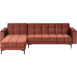 Tufted Corner Sofa with Reclining Backrest. Treat yourself to the perfect addition to your living room with this elegant corner sofa. Upholstered in high-quality velvet, it offers a comfortable sitting spot for up to four people. The reclining backrest enhances comfort, while the click-clack mechanism transforms it into an occasional sleeping spot. Featuring tufted detailing, the sofa brings a cosy yet stylish charm to your space. Explore other pieces in the collection to create your ultimate relaxation haven. Details: Product Type: Sofa Bed Style: Minimalist General Color: Red, Black Shade: Light Red Material Type: Fabric Main Material: Velvet Additional Material: Iron Filling Material: Foam Material Composition: 100% Polyester Shape: L-Shaped Arm Style: Track Leg Caps/ Pads: No Orientation: Right Hand Reclining: No Seat Construction: Elastic Belt Seat Foam Density: 25 kg/m3 Seats Up To: 4 People Sleeper Function: Yes Sofa Bed Open Mechanism: Click-Clack Storage: No Dimensions:
