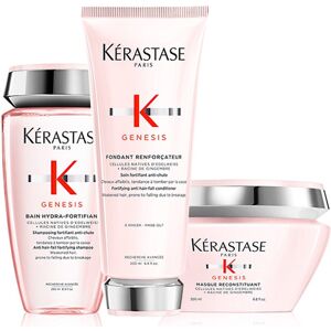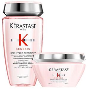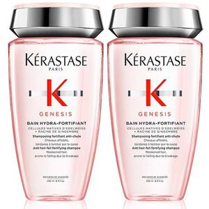 Stock up and save with this double pack. Kérastase Genesis Bain Hydra-Fortifiant is a anti hair-fall fortifying shampoo for weakened hair prone to falling due to breakage. Enriched with Edelweiss Native Cells, Ginger Root & Aquaxyl this shampoo helps reinforce fibre to reduce the risk of hair fall due to breakage. Up to 80.9% less hall fall due to breakage. Ingredients AQUA / WATER / EAU SODIUM LAURETH SULFATE CITRIC ACID COCAMIDOPROPYL BETAINE SODIUM HYDROXIDE PROPYLENE GLYCOL SODIUM CHLORIDE SODIUM BENZOATE HEXYLENE GLYCOL POLYQUATERNIUM-10 SALICYLIC ACID LIMONENE LINALOOL GLYCERIN BENZYL SALICYLATE COUMARIN ZINGIBER OFFICINALE ROOT EXTRACT / GINGER ROOT EXTRACT CITRAL BENZYL ALCOHOL CITRONELLOL XYLITYLGLUCOSIDE ANHYDROXYLITOL LEONTOPODIUM ALPINUM CALLUS CULTURE EXTRACT XYLITOL XANTHAN GUM DIPEPTIDE DIAMINOBUTYROYL BENZYLAMIDE DIACETATE PARFUM / FRAGRANCE Gorgeous Shop