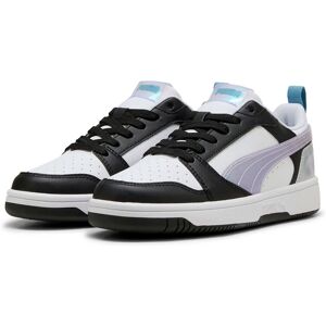 PRODUCT STORY.Drawing inspiration from basketball sneakers of the ´80s, these PUMA kicks alley-oop comfort and style to the next level.Available in a range of versatile designs, whether you go for high-top, mid- or low-cut, these sneakers are PUMA classics that your kids will want to wear every day.FEATURES & BENEFITS:SOFTFOAM+:Step-in comfort sockliner designed to provide soft cushioning thanks to its extra thick heel.The upper of the shoes is made with at least 20% recycled materials and the bottom is made with at least 10% recycled materials.DETAILS:Width:Regular.Toe Type:Rounded.Fastener:Elastics & hook and loop.Synthetic upper.Heel type:Flat.Lining:Textile.Outsole:Rubber.Iridescent design details.PUMA Kids:Recommended for young kids between 4 and 8 years.