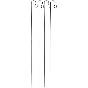 These border hooks are ideal for hanging a variety of garden accessories and positioning them around the garden – anywhere you can push the pole into the ground, you can have a border hook. They can be positioned in flowerbeds, lawns, amongst trees, shrubs and meadows; anywhere the ground is soft. The hooks can be used to hang a variety of bird feeders, create garden ambiance and mood with lights such as candle lanterns or solar lights. A popular use of these hooks is to place them in a line to direct wedding or party guests from a car park to the marquee. The hooks and poles are made from durable powder coated steel which makes them weather resistant, and the end of the hooks have a protective rubber stopper to ensure they are safe around children The hooks are 150cm high with 0.6cm pole diameter, the hook is 12cm with a 4.5cm smaller hook the end. * Perfect for candle lanterns or bird feeders * High quality and versatile * 1.5m high * Set of 4