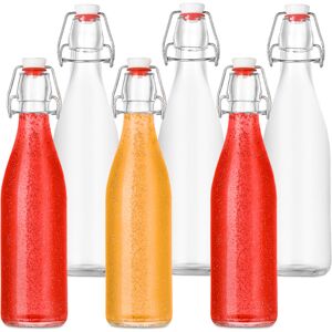 Fruity juices, fine spirits, or exquisite oils – this set of 6 glass bottles is the ideal companion for your DIY creations. The secure wire clip closure protects the aroma and keeps contents fresh for a long time, making these filled bottles perfect not only as gifts but also for long-term storage of homemade products. The liqueur bottles come with replacement seals and writable labels, ensuring you’ll never lose track of what’s inside. Bottles for filling in detail - Dimensions 250 ml H x D: approx. 20 x 6 cm - Dimensions 500 ml H x D: approx. 26.5 x 7 cm - Dimensions 1 litre H x D: approx. 31 x 8.5 cm - Material: glass, iron, plastic - Colour: transparent, silver, red, white Set of 6 empty glass bottles - Ideal for homemade juices, liqueurs, oils, and vinegar - Gift idea for Christmas, birthdays, weddings, and more - Leak-proof thanks to stopper with wire clip closure - Oil bottles made from odourless and tasteless glass - Also decorative as vases or for DIY gifts - Includes
