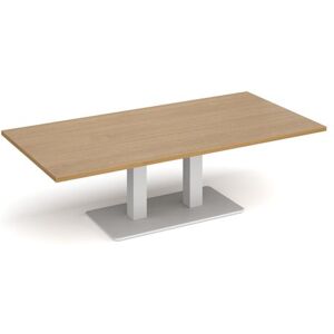 Eros rectangular coffee table with flat black rectangular base and twin uprights 1600mm x 800mm - oak