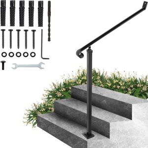Mophorn 2-3 Steps Handrail - Safety and Style Combined Versatile and Durable Handrail Solution This wall and floor mount handrail is crafted from wrought iron with powder coating for rust and scratch resistance and a comfortable grip. Comprehensive accessories are included for quick installation. Ideal for steps to the porch, suitable for 2-3 steps and level surfaces. Versatile 2-3 Steps Handrail Robust Wrought Iron Construction Wall & Floor Mount Options Complete Installation Kit Key Features Wall & Floor Mount:The handrail has five φ 0.5""/ 1.2 cm pre-drilled holes for secure fixation on various walls. An ornamental base trim covers screws and bolts for a rust-proof and good look. The ergonomic curve design matches your decor. Sturdy Wrought Iron:Our step grab rail is made of 0.12""/ 3 mm thick wrought iron, capable of supporting up to 440 lbs/ 200 kg without deformation. Well-welded and with powder coating, it's smooth, comfortable, and easy to clean. Installation Kit to