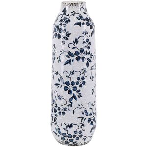 Tall Vase with Floral Print. Every space needs some flowers placed in a stylish vase to make it more homely. This piece will be a perfect base for freshly cut hyacinths or orchids, as it is waterproof, so pouring water inside won't destroy it. The vase is made out of stoneware, which is easy-care while also being durable. The whole vase features a distressed effect on the top and bottom, with slight, deliberate cracks on the paint, which enhance the retro vibe of the product. Details: Product Type: Flower Vase Style: Retro General Color: White, Blue Material Type: Ceramic Main Material: Stoneware Handmade: Yes Dimensions: Depth: 12 cm Width: 12 cm Height: 35 cm Weight: 1 kg Offer Includes: 1 x Vase Key Features: Hand-Crafted with High Attention to Detail, Well-Suited for Variety of Home Decor, High-Quality Materials, Unique Handmade Piece, Exceptionally Low-Maintenance, Water-Resistant Thanks to Top-Notch Materials, Pad to Prevent Scratching the Surface Assembly Information: Does Not