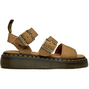 These tan nubuck sandals bring Dr. Martens' iconic edge to warm-weather wear. The Gryphon Quad features the brand's signature AirWair heel loop and side-stitched rubber sole for that unmistakable DM's construction. Branded buckles add industrial flair while the suede insole keeps comfort levels high. A fresh take on flat slides that maintains all the rebellious spirit you'd expect from the legendary bootmaker.