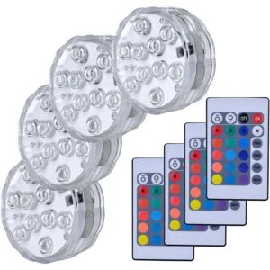 Easy to Install: IP68 waterproof LED light with 2 non-enhanced magnets, 2 suction cups. The waterproof light suction cups can be used in the air and underwater on flat and smooth surfaces, or a magnet to attach to steel spots, or hang on a nail. IP68 Waterproof: LED diving lights shell made of high-performance waterproof material, the unscrewable bottom has a rubber O-ring to prevent water from entering. There is no risk of leakage after the cover is tightly twisted. Perfect for home decoration in vases, bathtubs, swimming pools or any water container. Multifunction RGB LED Underwater Light: LED underwater lights with 13 lamp beads for 16 different colors. 3 color changing modes (flash, fade, smooth) 1 brightness adjustment mode and 3 timer functions (2h, 4h, 6h). Flexible color changes allow for endless decorating possibilities. RF Remote Control: The remote control distance of the RF remote control is longer and more stable. No need to align, no need to aim at the light. It can