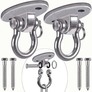 【Indoor and Outdoor Use】: Perfect for swings, swing chairs, swinging chairs, punching bags or any other heavy objects from a hanging bracket. 【Corrosion Resistance, High Hardness】: 304 stainless steel rings made of high quality raw materials. No rust, corrosion resistance, high hardness, non-toxic and non-polluting environment. 【Easy to Install】: We have pre-drilled two holes for bolting to wooden or concrete beams. Includes 2 concrete anchors and 2 hex lag screws, and a unique one-piece design and can be installed in minutes. 【Rotation Design】: The innovative design makes the use more flexible and can be used more widely. Such as playgrounds, swings, porch swings or ham swings 【Safety and Strength】: Count on these high-quality swing hangers to safely support children and adults. The weight limit is 1000 lbs The innovative SUS 304 stainless steel swing hangers are the safest and strongest option for outdoor swings, porch swings, bench swings, yoga swings, etc. They are pre-drilled and