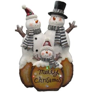 LED Snowman Family Merry ChristmasThis Christmas why not let our family of cheerful snowmen into your home and wish your family and friends a Merry Christmas in style.This amazing figurine could sit pride of place in your Christmas display this year and help to bring the Christmas spirit into your home.This stunning ornament features a family of cheerful snowmen sitting on top of a log that says Merry Christmas.Our festive figurine is extremely eye catching thanks to it's incredible detail and warm vibrant colours. Featuring several flashing multicoloured LED lights this decoration can help to illuminate your room this Christmas.Made from strong durable materials our figurine can last for many Christmases to come.Requires 2 x AA batteries (not included)SpecificationsHeight: 40CMLength: 25CMWidth: 9CMBatteries Required: 2 x AA (not included)Product Code: SFZZZZZNF36749Weight: 1.44kg