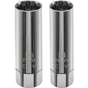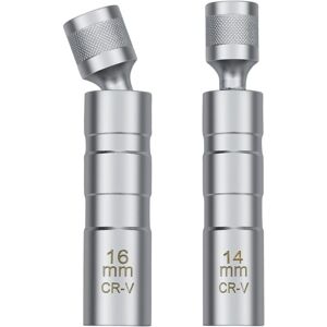Quality Materials: This tool is made of high quality chrome vanadium steel. High temperature treatment during the whole process to prevent corrosion. Can withstand greater pressure without deformation. Strong Magnetism: The 16mm/14mm spark plug socket has many powerful magnets at both ends. The unique magnetic design ensures that the spark plug socket stays in place during installation and removal, without having to worry about losing it. Can Rotate 360 Degrees: The swivel head can rotate 360 degrees, necessary tool for spark plug change and the only way to remove spark plugs on some car models. Ideal Tools: 3/8 inch long rotating socket, 16mm and 14mm magnetic head with 12-point design, 1.2mm thickness. The spark plug wrench is compatible with multiple vehicles and is an essential tool for any car owner. Package Content: 1 x 14mm Thin Wall Universal Joint Spark Plug Connector + 1 x 16mm Thin Wall Universal Joint Spark Plug Connector. Note: The data are all measured manually, please